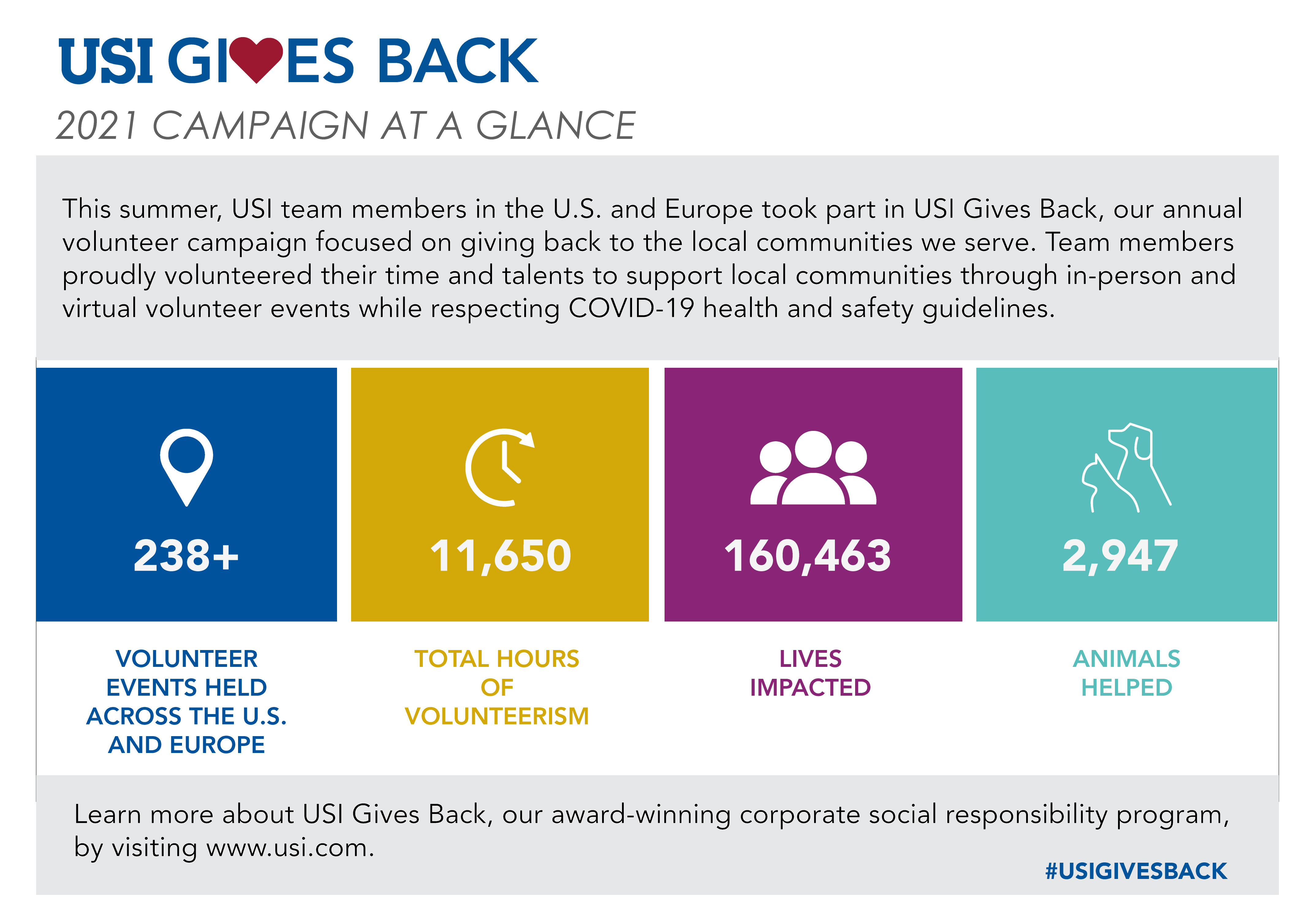 Eighth Annual USI Gives Back Campaign Impacts Over 160,400 Lives Through More Than 11,600 Hours of Volunteerism