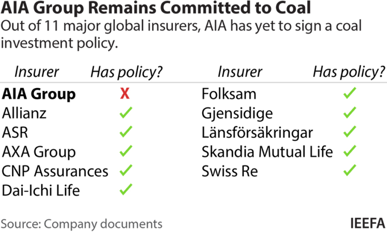 IEEFA: AIA Too Important to Lag Global Insurers in Coal Investment, Divestment, and Exclusion